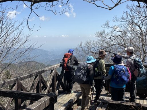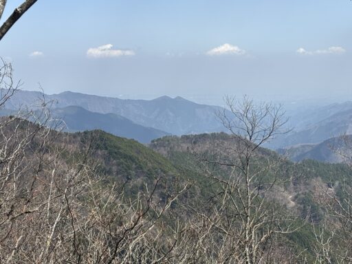 東峰から少し入った所に展望台が。大岳山、御前山が見えます。