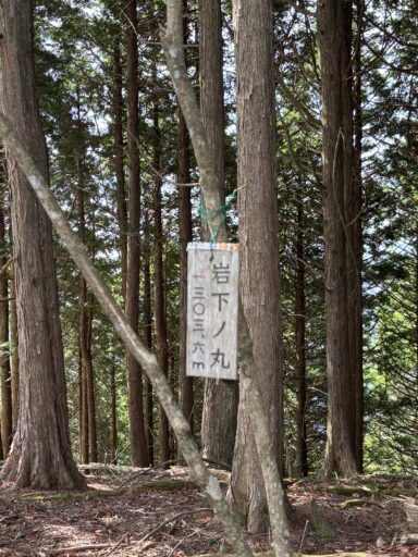 そして御正体山山頂到着(1682m)。開けた場所に祠と山頂標識、テーブルとベンチがあります。残念ながら眺望はありませんが、少し下ったところで富士山や南アルプスを眺めることができました。